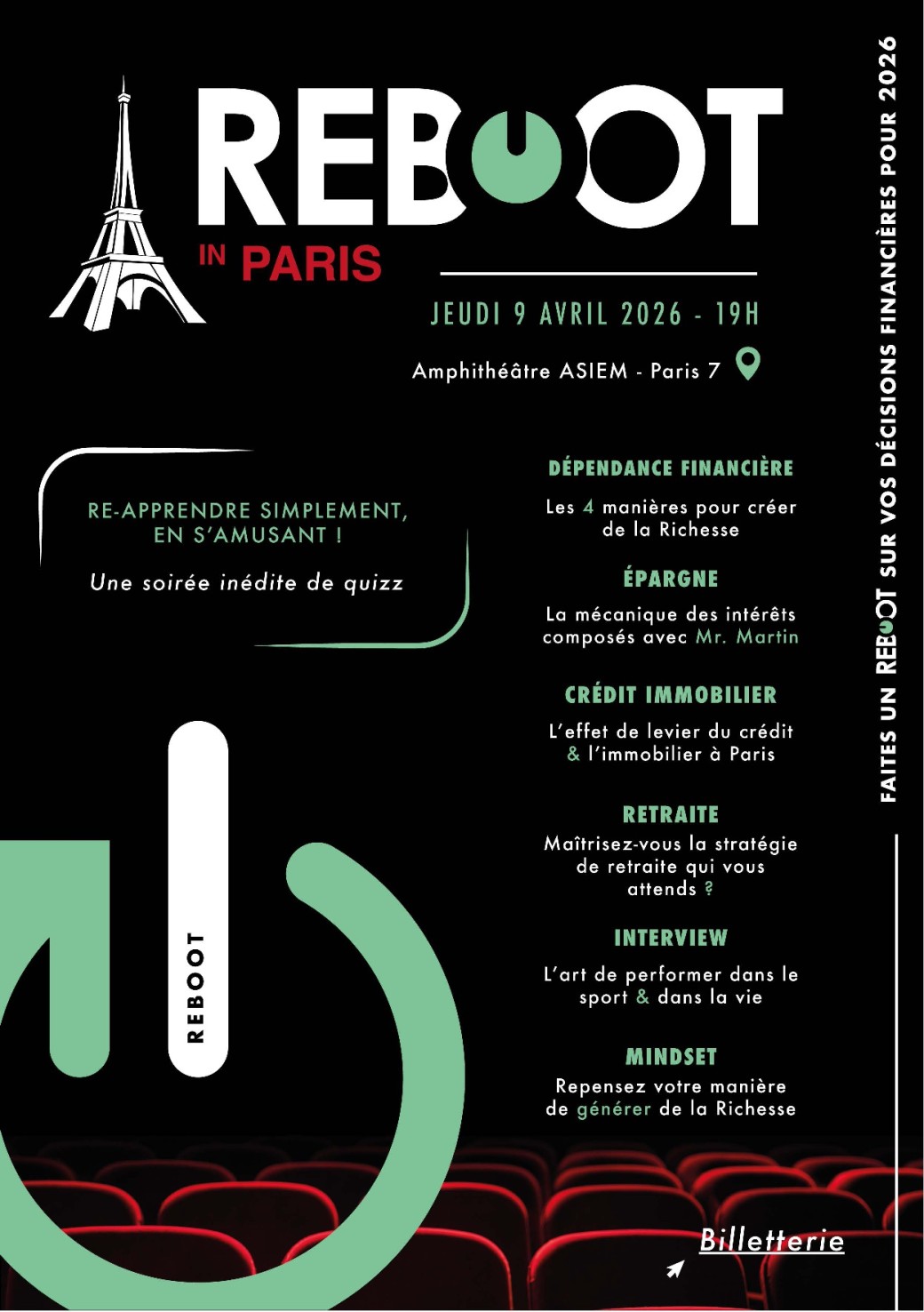 REBOOT Paris 2026 est une soirée unique dédiée à l’éducation financière, à l'investissement et à l'entrepreneuriat moderne… mais surtout à l’apprentissage ludique.