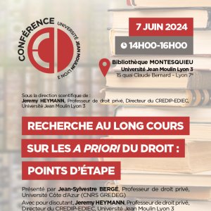2024-06-07 14:00:002024-06-07 16:00:00Europe/ParisRecherche au long cours et a priori du droit : points d'étapeReservations on : https://www.billetweb.fr/recherche-au-long-cours-et-a-priori-du-droit-points-detape