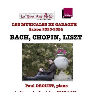 Reservations on : https://www.billetweb.fr/recital-grand-piano-bach-chopin-liszt-gavottes-gigues-bourrees-mazurkas-et-airs-dopera --