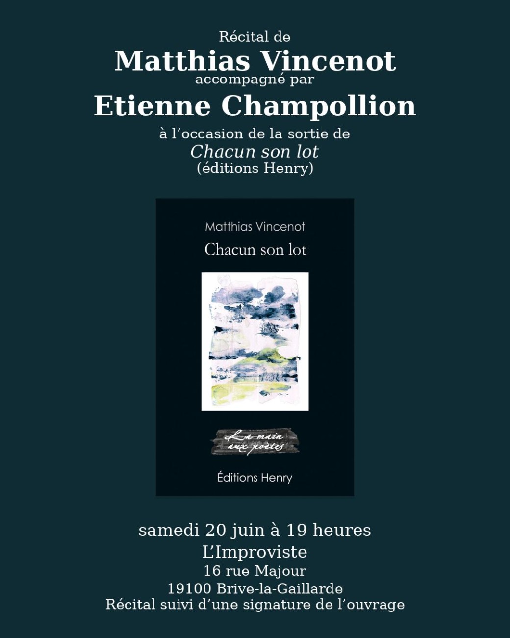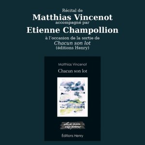 le poète Matthias Vincenot propose un récital exceptionnel à L’Improviste, accompagné par Étienne Champollion.