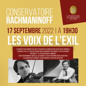 2022-09-17 19:30:00 2022-09-17 21:00:00 Europe/Paris Récital Violon et Piano - Les Voix de l'Exil Reservations on : https://www.billetweb.fr/recital-violon-et-piano1 -- Conservatoire Serge Rachmaninoff de Paris, Avenue de New York, Paris, France Conservatoire Rachmaninoff