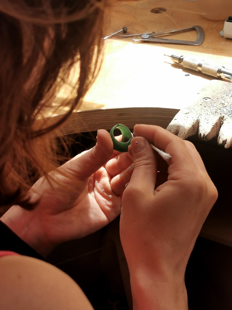 La technique de la cire perdue existe depuis des siècles et son principe reste le même : on utilise la cire pour réaliser un modèle, on l’entoure d’un matériel qui prend son empreinte, on fait fondre la cire et à sa place on coule du métal. Cette technique est utilisé dans l’art, dans l’artisanat et dans l’industrie.  Dans la bijouterie elle permet de créer des formes en volume et offre une approche plus sculptural.
