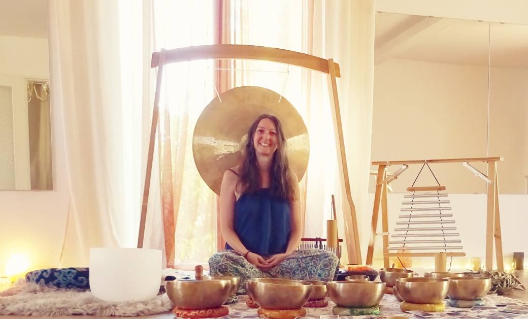 Dans le chaleureux studio de yoga Yogasunrise Poitiers, j'ouvre une bulle de détente et de relaxation apaisante grâce aux doux sons et aux vibrations profondes et enveloppantes des bols chantants