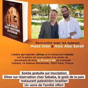 La maison d’édition, L’Arbre qui marche est heureuse de vous convier au lancement du livre de Maoz Inon et Aziz Abu Sarah « La Paix est notre avenir », en partenariat avec ALLMEP- Alliance for Middle East Peace, le mardi 19 mai 2026 au Consulat Voltaire.