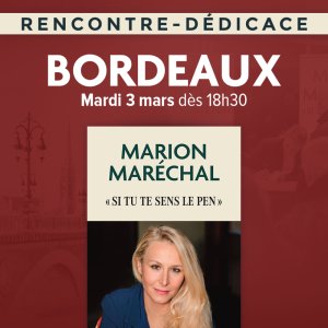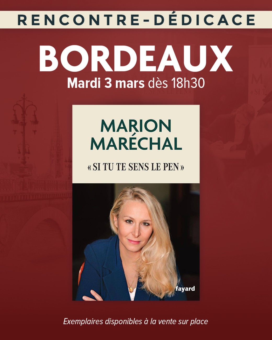 Rencontre-dédicace avec Marion Maréchal pour son livre "Si tu te sens Le Pen", publié aux éditions Fayard, à Bordeaux.