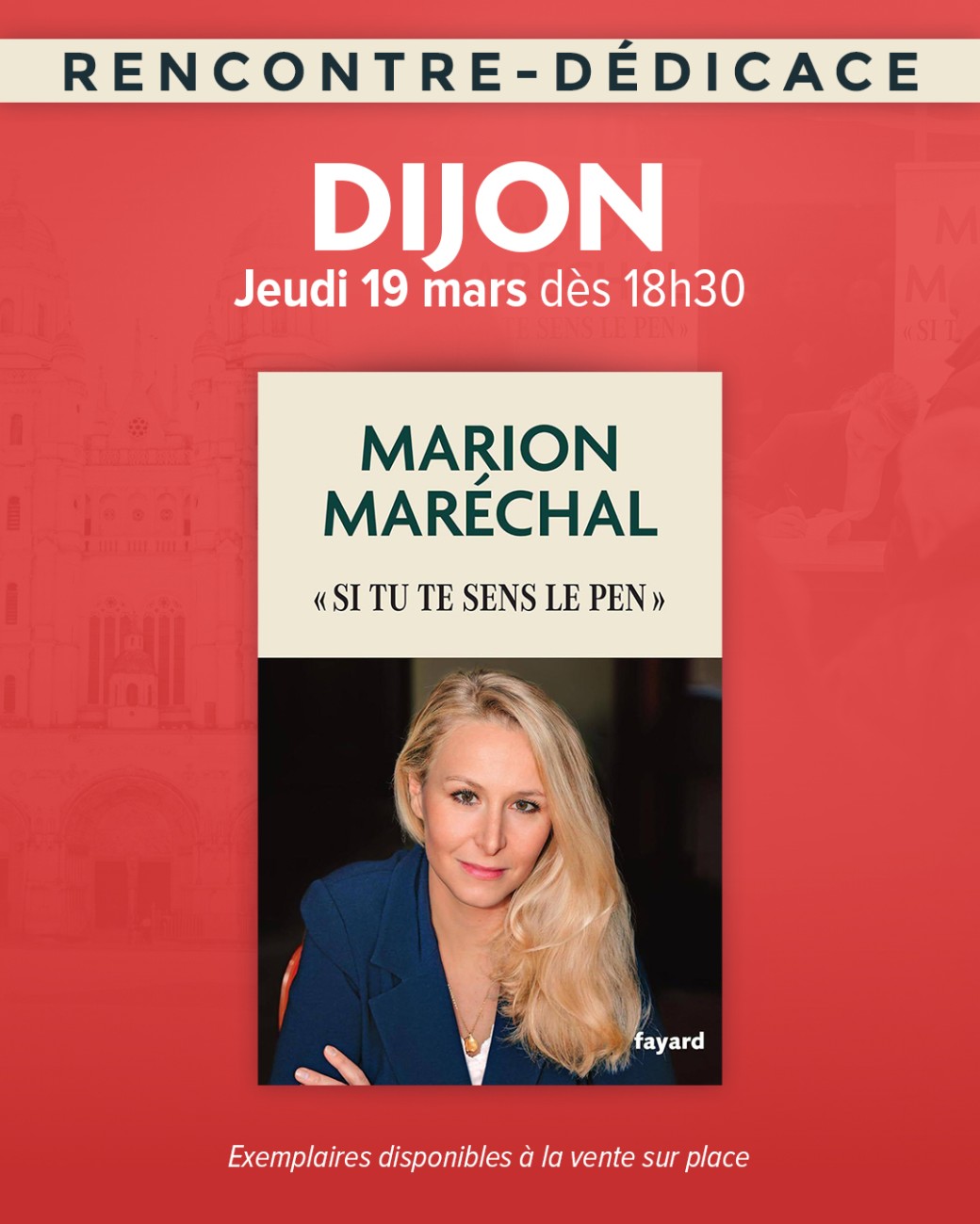 2026-03-19 18:30:002026-03-19 21:00:00Europe/ParisRencontre dédicace avec Marion Maréchal à DijonRéservation sur : https://www.billetweb.fr/rencontre-dedicace-avec-marion-marechal-a-dijon