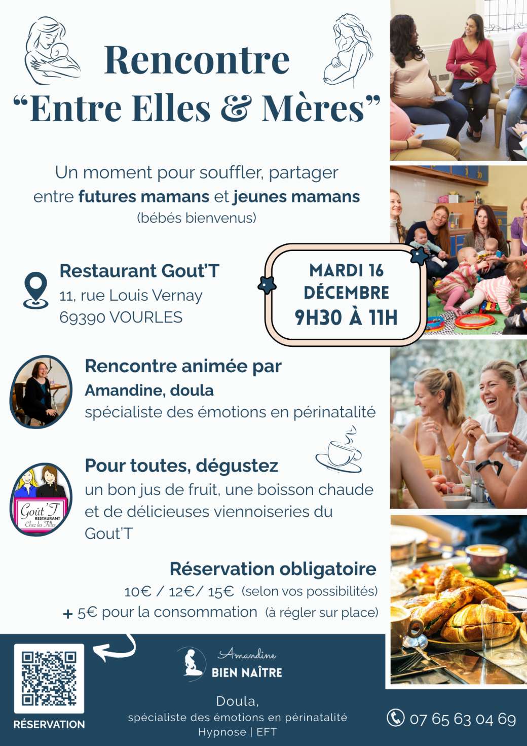Un temps de partage bienveillant entre futures mamans et jeunes mamans (bébés bienvenus), animé par Amandine, doula au sud et à l'ouest de Lyon.
