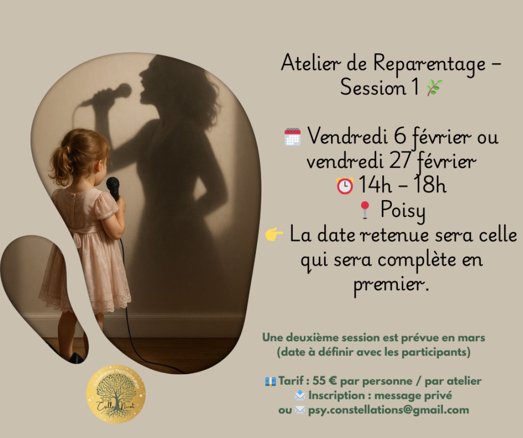 L'Atelier de Reparentage Session 1. sera Proposé le Vendredi 6 Février ou Le 27 Février selon les inscriptions