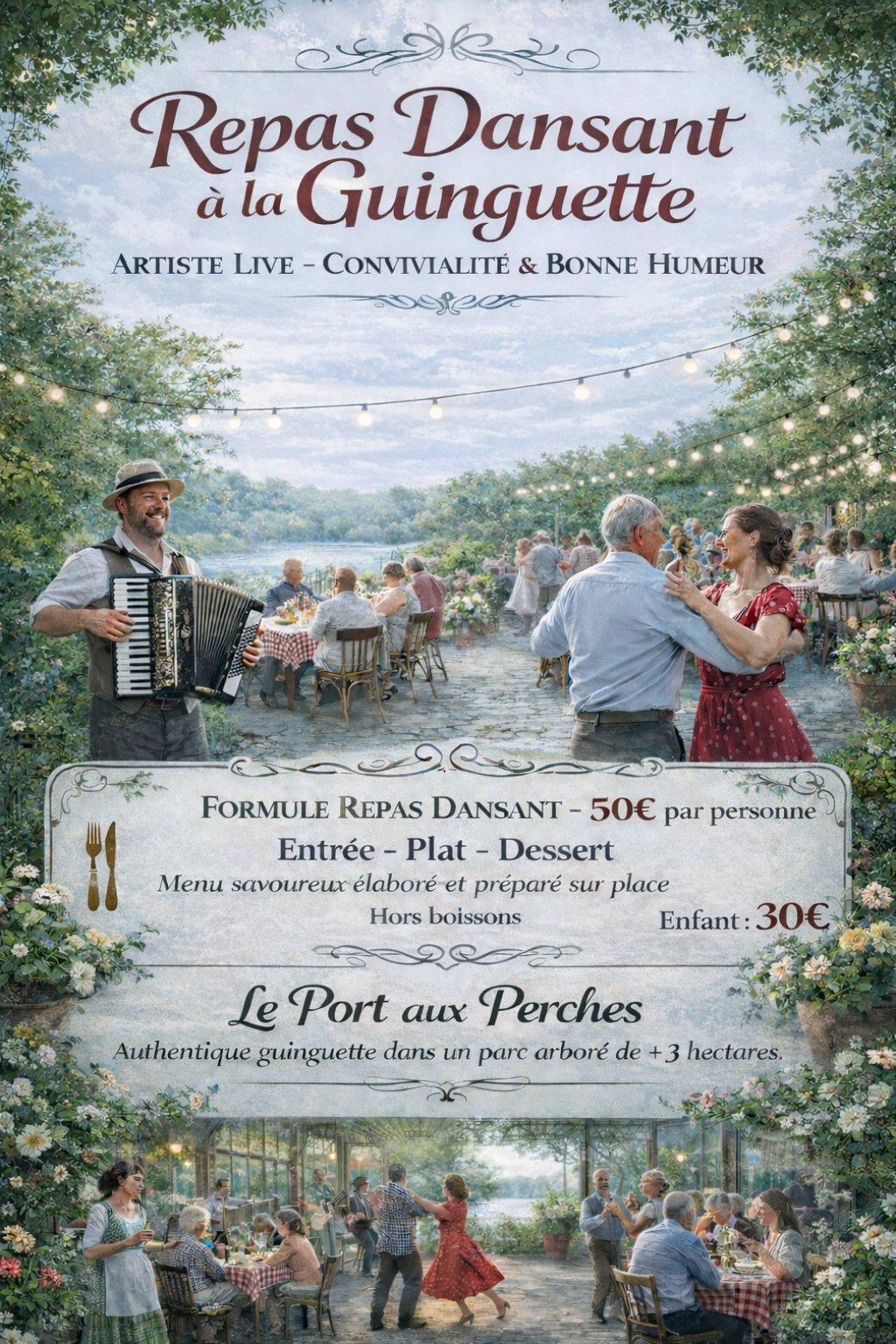 À partir de 12h, vivez une journée festive au Port aux Perches, authentique guinguette nichée au cœur d’un parc arboré de plus de 3 hectares.