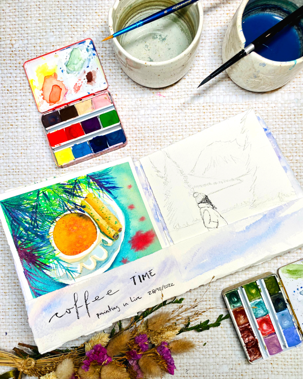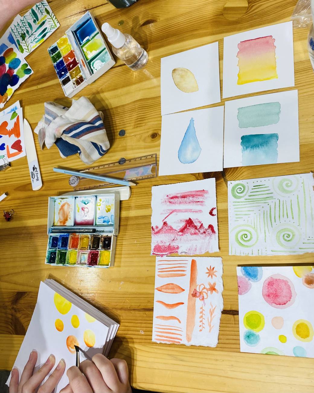 Initiation à l’aquarelle et au pliage de livre accordéon.