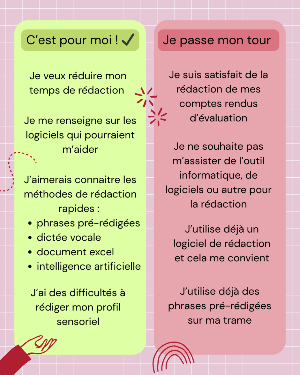 - La rédaction du profil sensoriel (Dunn, Bogdashina, SensOTdir)