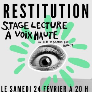 Restitution du stage de lecture à voix haute encadré par Morgane Deman, responsable artistique de la compagnie LOGOS. Les stagiaires mettront en voix des textes écrits par de jeunes artistes ayant participé au laboratoire d'expérimentation du LEM.