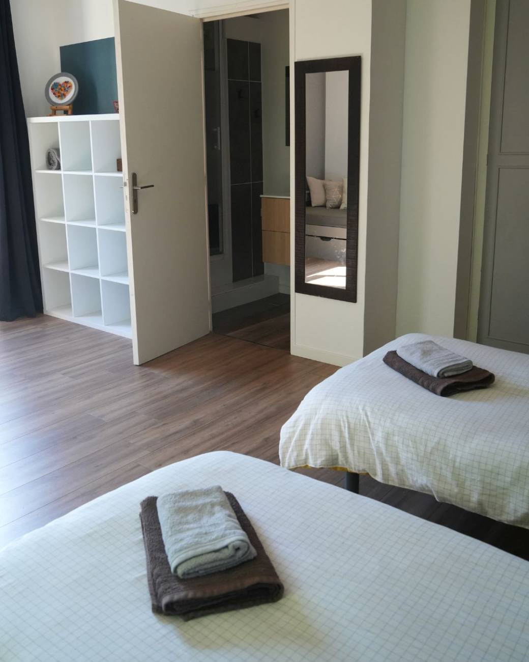 La maison dispose de chambres partagées avec lits simples (chambres de deux personnes et jusqu'à 4 personnes) et deux chambres individuelles avec lit double et salle de bain. Certaines chambres ont leur salle de bain pour garantir confort, fluidité et intimité tout au long du séjour.