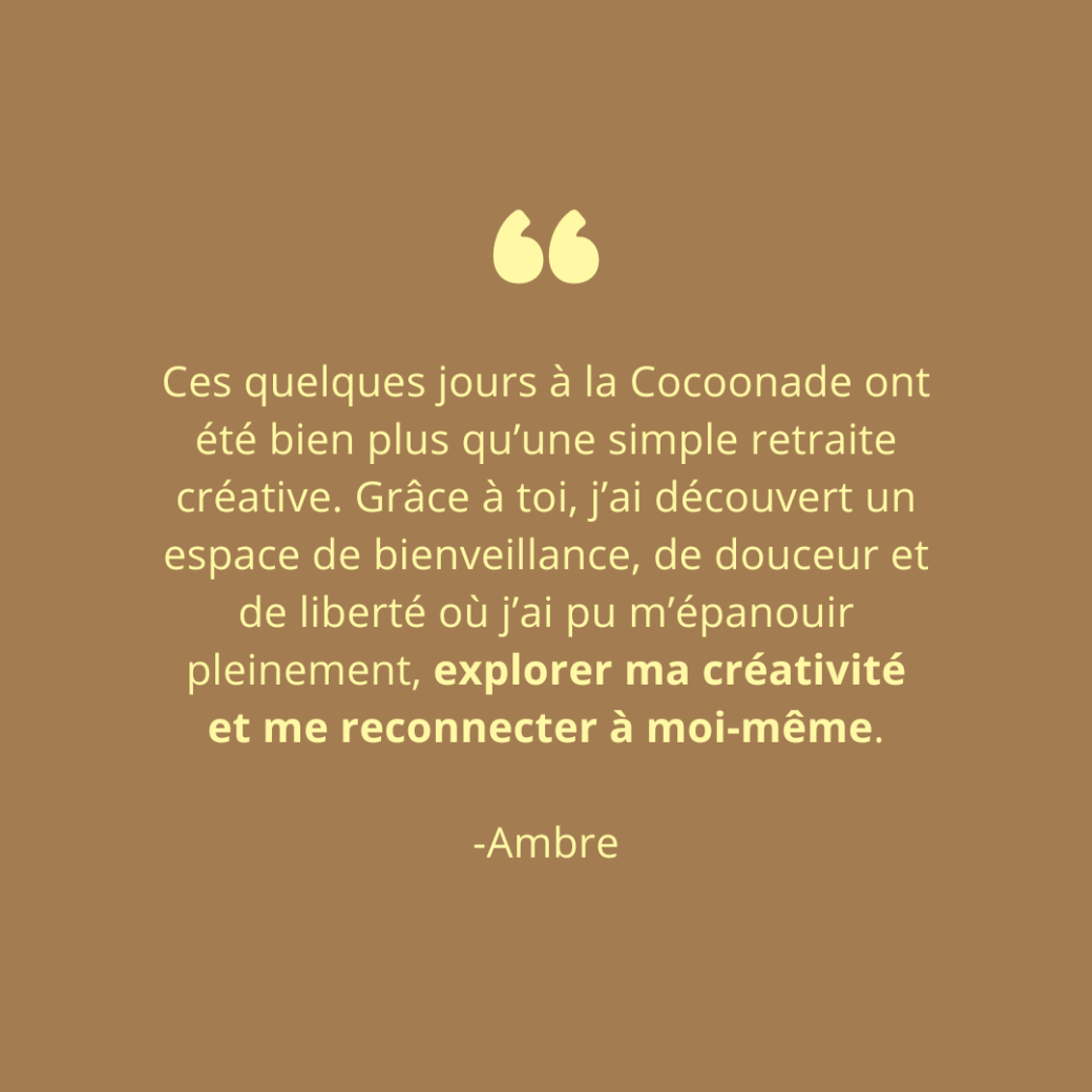 Les retraites créatives de La Cocoonade sont imaginées comme des petits cocons qui permettent aux femmes de renouer avec leur créativité, de retrouver une forme d'émerveillement, de se reconnecter à leur enfant intérieur et surtout de prendre du temps pour elles ✨