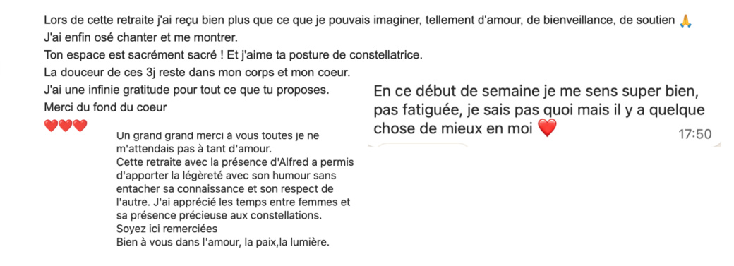 interdictions de réussir, de briller, d’être vue, de dépasser. Les constellations ouvrent des espaces de réajustement profond, là où la place juste peut enfin être habitée.