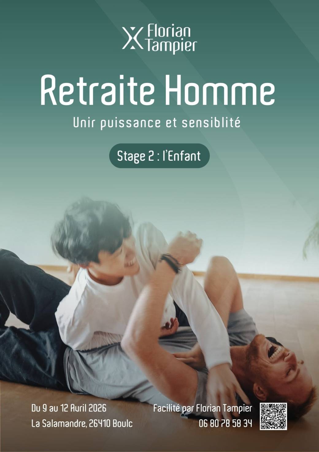 2026-04-09 14:00:00 2026-04-12 18:00:00 Europe/Paris Retraite homme : Stage 2. L'Enfant Reservations on : https://www.billetweb.fr/retraite-homme-stage-2-lenfant --                   HOMME — De la vulnérabilité à la puissance · Le Cycle de 3 retraites      ✨ Ce cycle s’adresse aux hommes qui veulent unir puissance et sensibilité pour se libérer des anciens schémas, reprendre leur place authentique et construire des relations plus profondes et bienveillantes.   site web ici pour une meilleure lisibilité : site internet       Bonjour à tous et à toutes, et bienvenue dans cet espace créé spécialement pour les hommes.   Ce cycle se veut une continuité, un espace ouvert afin d’explorer leurs différentes facettes et goûter une fraternité profonde pendant plusieurs jours et au‑delà.   Trouver de la sécurité, de l’ancrage, de la compréhension de nos fonctionnements et de nos émotions pour ensuite plonger dans la sensibilité, la vulnérabilité, l’accueil et le partage avec le groupe. Se réconcilier avec son humanité, pour ensuite se reconnecter à son âme, au plus grand.                 Le projet en un coup d’œil   Trois retraites complémentaires pour intég… LA salamandre, Pré Martal, Boulc, France Florian Tampier EI
