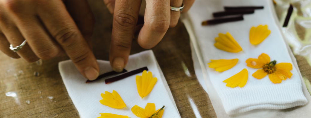 >>Tu réaliseras deux ateliers découverte autour de la teinture pour créer du bleu après le montage d'une cuve d'indigo et de belles impressions végétales. Pas de prérequis, tu seras guidé(e) pas à pas et prendras le temps nécessaire !
