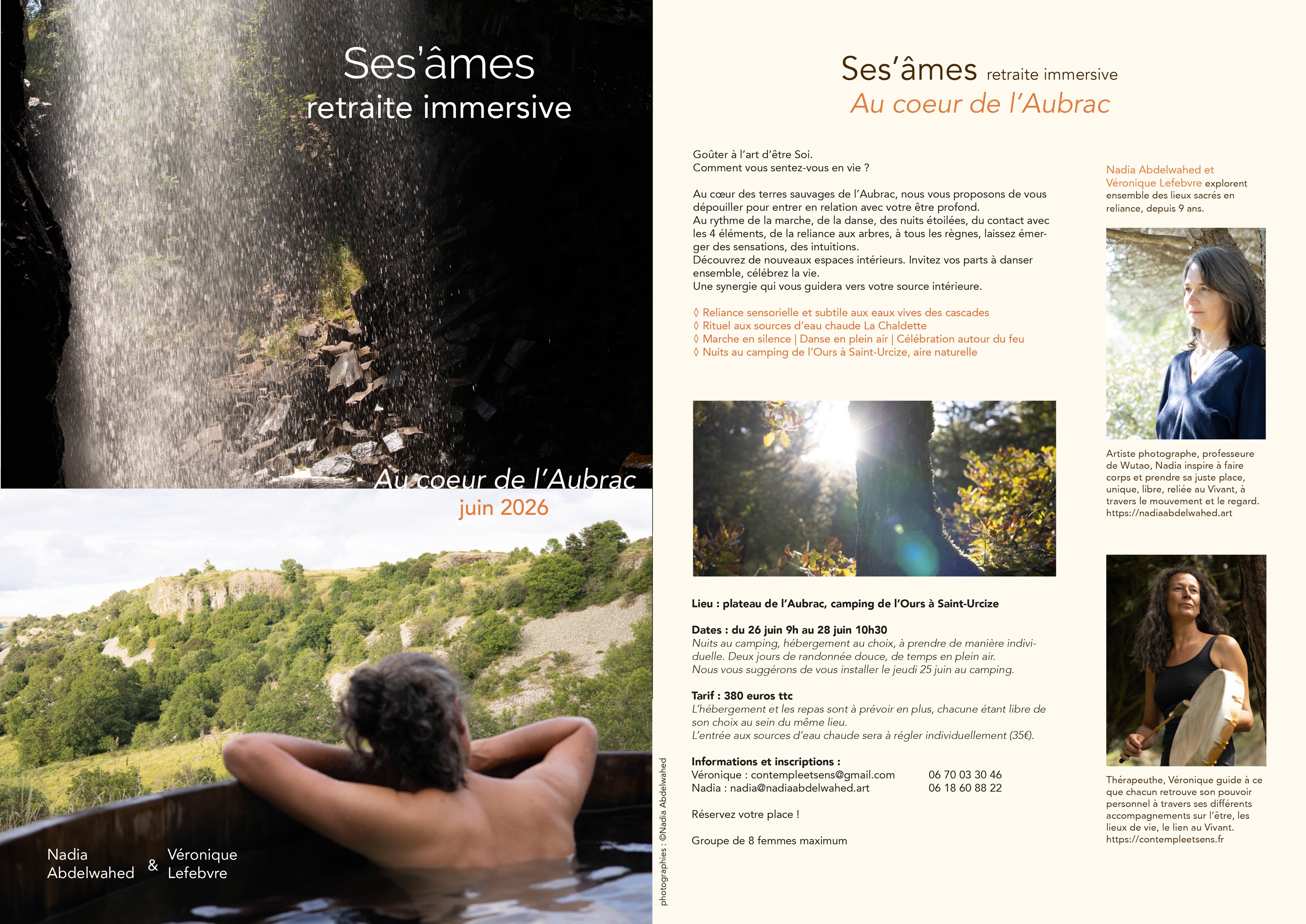Au cœur des terres sauvages de l’Aubrac, nous vous proposons de vous dépouiller pour entrer en relation avec votre être profond. Au rythme de la marche, de la danse, des nuits étoilées, du contact avec l’eau, de la reliance à la terre, aux arbres, à tous les règnes, laissez émerger des sensations, des intuitions. Découvrez de nouveaux espaces intérieurs. Invitez vos parts à danser ensemble, célébrez la vie.