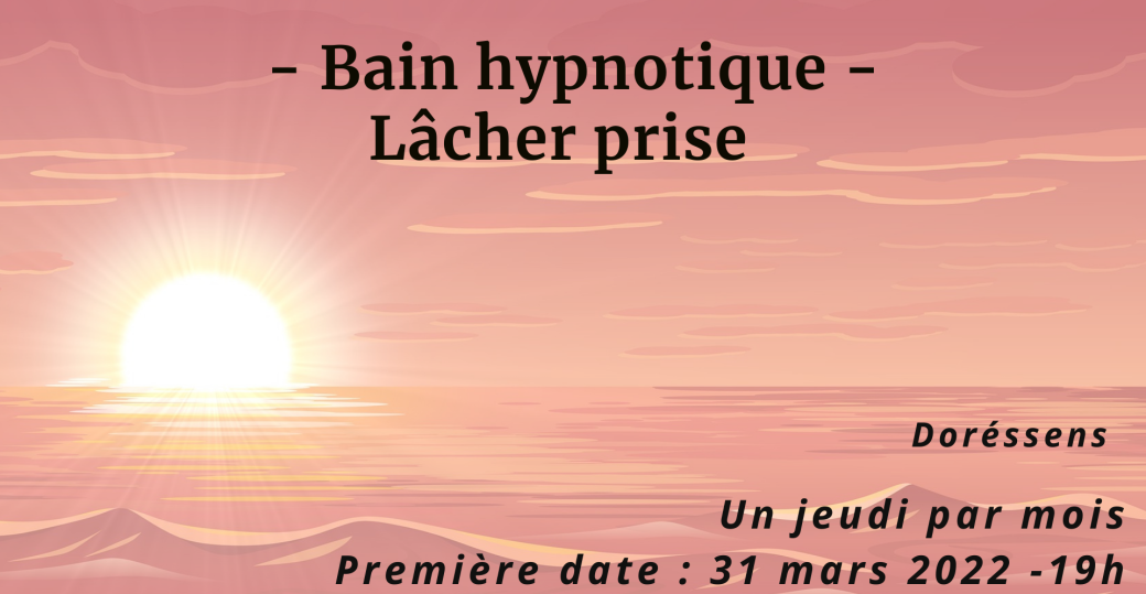 2022-03-31 19:00:00 2022-03-31 21:00:00 Europe/Paris Bain hypnotique : lâcher prise Reservations on : https://www.billetweb.fr/retrouver-son-ame -- Doréssens, Route de Montluzin, Chasselay, France Myriam Trapassi