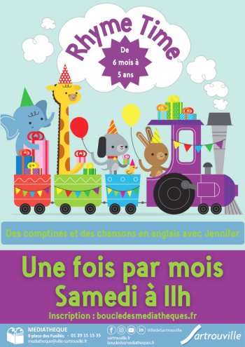 2026-04-25 11:00:00 2026-04-25 11:40:00 Europe/Paris Rhyme Time à la médiathèque Reservations on : https://www.boucledesmediatheques.fr/Sartrouville -- Chansons et comptines en Anglais. Animé par Jennifer. Chaque enfant doit être accompagné pour cette animation. Enfants de 6 mois à 5 ans Gratuit sur inscription Médiathèque de Sartrouville, Place des Fusillés, Sartrouville, France Médiathèque de Sartrouville