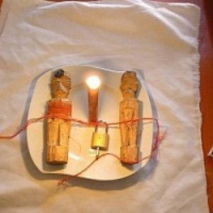 Accendere le due candele rosse e posizionatele una accanto all’altra. Posizionate davanti ad esse la ciotola vuota.