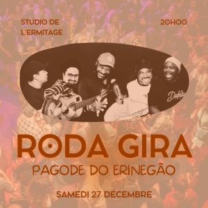 2025-12-27 20:00:00 2025-12-27 23:55:00 Europe/Paris Roda Gira - Pagode do Erinegão Reservations on : https://www.billetweb.fr/roda-gira-pagode-do-erineg-o -- Ouverture des portes à 20h00, concert dès 21H00. Tarif en prévente à 15€ (hors frais de location) Vente sur place dans la limite des places disponibles à 15€ Vestiaire - Vente de beignets à l'étage.    L'accès aux enfants de moins de 7 ans n'est pas autorisé pour ce concert. Parce qu'une seule roda ne suffisait pas, une nouvelle soirée est née. Chaque dernier samedi du mois, la Roda Gira ouvre la danse d’un week-end consacré à la samba ! Un moment de partage où notre roda emblématique ouvre son cercle et invite d’autres rodas amies à nous rejoindre. Au programme : des sons qui se répondent, des sourires qui s’échangent et cette chaleur propre au samba, qui rassemble bien au-delà de la musique. Venez vibrer avec nous, chanter, danser et sentir l’énergie qui naît quand les voix et les instruments se rencontrent. Une soirée pleine de convivialité, avec le rythme du Brésil en toile de fond. ___ Le Pagode do Erinegão est un projet musical né à Paris, nourri par la culture des rodas de samb… Studio de l'Ermitage, 8 Rue de l'Ermitage, Paris, France Studio de l'Ermitage