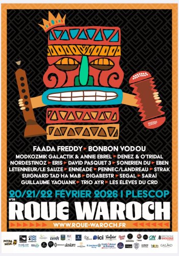 2026-02-20 20:00:00 2026-02-22 19:00:00 Europe/Paris Roue Waroch 2026 Reservations on : https://www.billetweb.fr/rouewaroch2026 -- Venez profiter du 28 ème Roue Waroch à Plescop (56), l'événement culturel mêlangeant les musiques du monde et la musique bretonne actuelle ! Au programme:   Vendredi 20 février (20h30) 10€ Bonbon Vodou - Kernin/Pinc/Portanguen   Samedi 21 février (18h, 18€ en prévente, 20€ sur place) Faada Freddy - Modkozmik Galactik & Annie Ebrel - Denez & O'Tridal Eris - David Pasquet 3 - Eben - NordestiNoz - Digabestr - Enneade  Le Sauze/Letenneur - Pennec/Landreau - Suignard Tad ha Mab Tremplin groupe de fest noz/Les élèves du CRD   Dimanche 22 février (12h) 10€ Sonerien Du - Segal - Strak - Saraï Guillaume Yaouank   Plus d'info sur www.roue-waroch.fr Restauration & buvette sur place/Gratuit pour les moins de 12ans 20 Rue du Stade, 56890 Plescop, France Roue Waroch/Asso Petra Neue