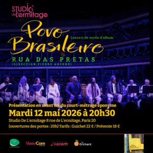 2026-05-12 20:00:00 2026-05-12 22:30:00 Europe/Paris Rua Das Pretas Reservations on : https://www.billetweb.fr/rua-das-pretas -- Ouverture des portes à 20h00 - Concert à 20h30 Prévente 18€ (hors frais de location) // Vente sur place : 22€ Le collectif Rua Das Pretas, sous la direction du compositeur et guitariste brésilien Pierre Aderne, pionnier des musiques contemporaines et du monde qui a collaboré avec des artistes à la renommée internationale tels que Seu Jorge, Melody Gardot, Tito Paris, Sara Tavares,António Zambujo ou encore Madeleine Peyroux, révélera l'album « Povo Brasileiro » (le 12e album sous le nom d'Aderne) qui sortira le 10/04/2026 en CD et digital chez Harmonia / The Orchard. Cet opus ainsi que le court-métrage éponyme seront présentés le mardi 12/05/2026 à 20h00 sur la scène du Studio de L'Ermitage, lors d'un concert de lancement exceptionnel. Povo Brasileiro, le nouvel album accompagné d'un court métrage de Pierre Aderne et du collectif Rua Das Pretas, s’empare d’un texte clé (Darcy Ribeiro) pour parler de ce que l’Atlantique a fabriqué - peuples, langues, fractures, circulations - sans passe… Studio de l'Ermitage, 8 Rue de l'Ermitage, Paris, France Studio de l'Ermitage