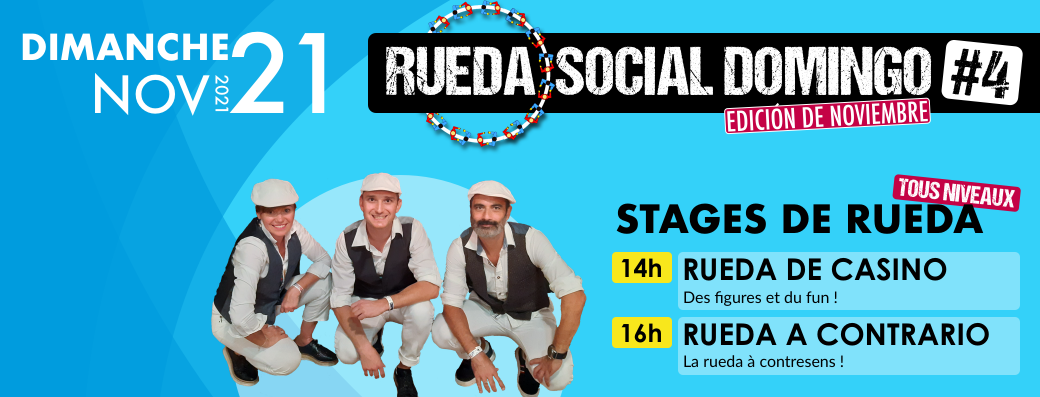 Au programme de cette édition de novembre, 2 stages d'une heure et demi pour apprendre des nouvelles figures et découvrir une nouvelle structure, la rueda "a contrario", dans laquelle un couple sur deux se déplace à contre-sens. Ces stages seront animés par l'équipe du Rueda Social Club.