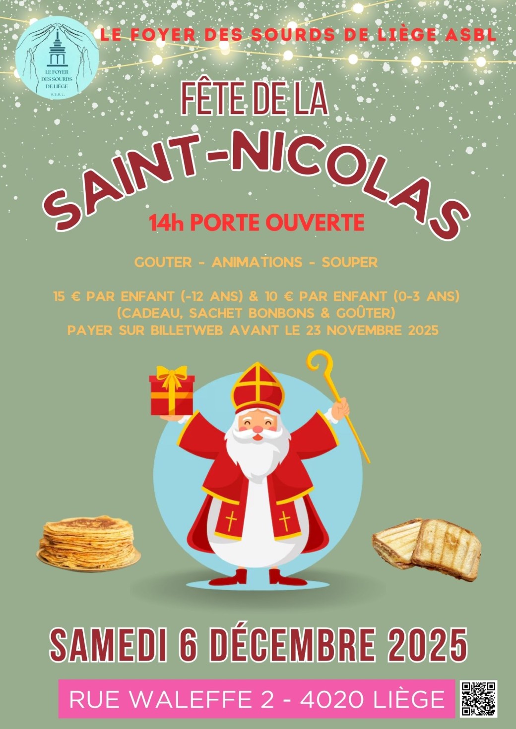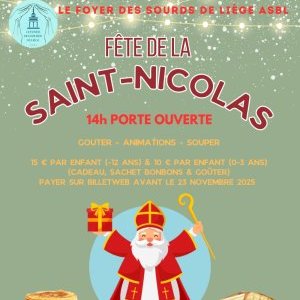 2025-12-06 12:00:002025-12-06 20:00:00Europe/BrusselsSaint-Nicolas au Foyer des Sourds de LiègeReservations on : https://www.billetweb.fr/saintnicolasfdsl