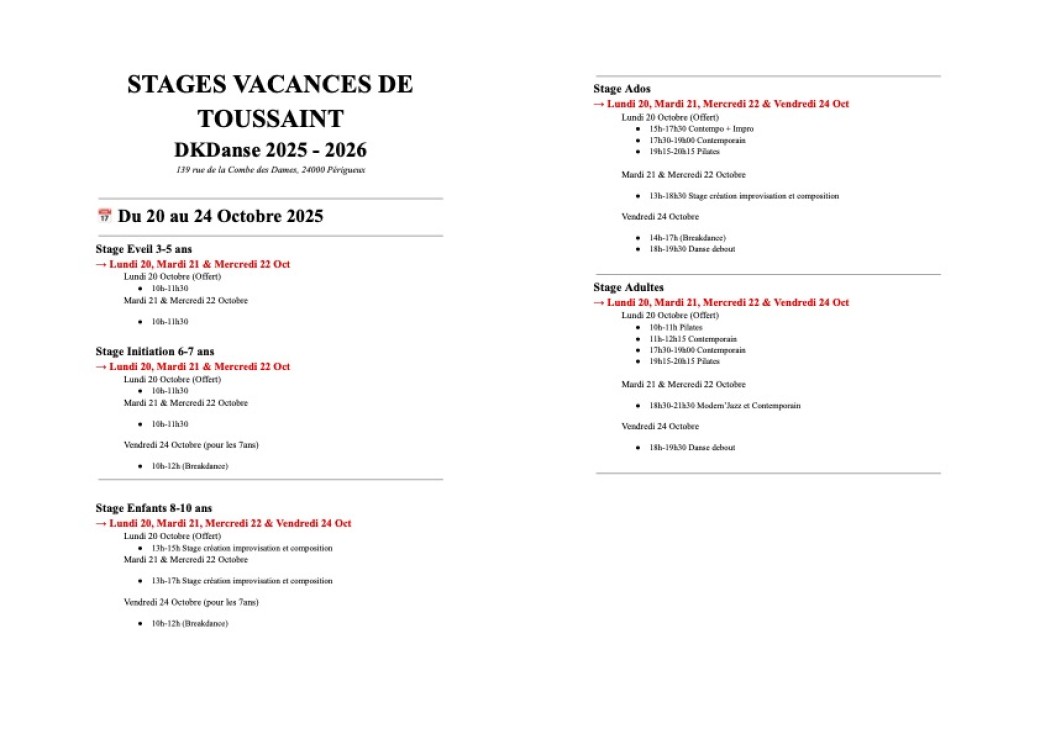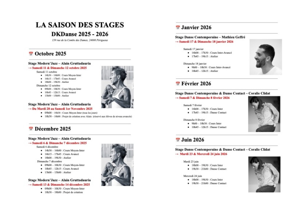 Reservations on : https://www.billetweb.fr/saison-des-stages-2025-2026-modern-jazz-contemporain-danse-contact --