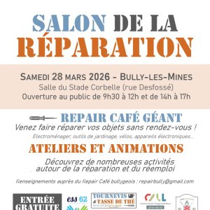 2026-03-28 09:00:002026-03-28 17:00:00Europe/ParisSalon de la Réparation de Bully-les-Mines 2026Reservations on : https://www.billetweb.fr/salon-de-la-reparation-de-bully-les-mines-2026