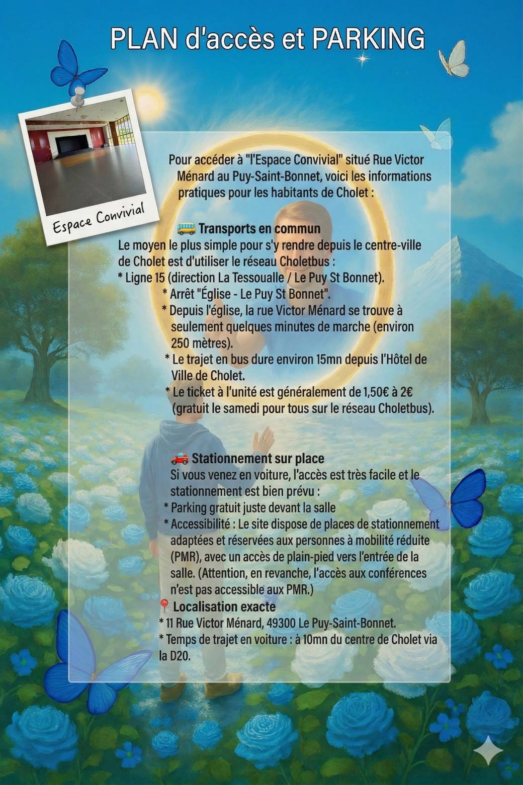 Pour accéder à "l'Espace Convivial" situé Rue Victor Ménard au Puy-Saint-Bonnet, voici les informations pratiques pour les habitants de Cholet :
