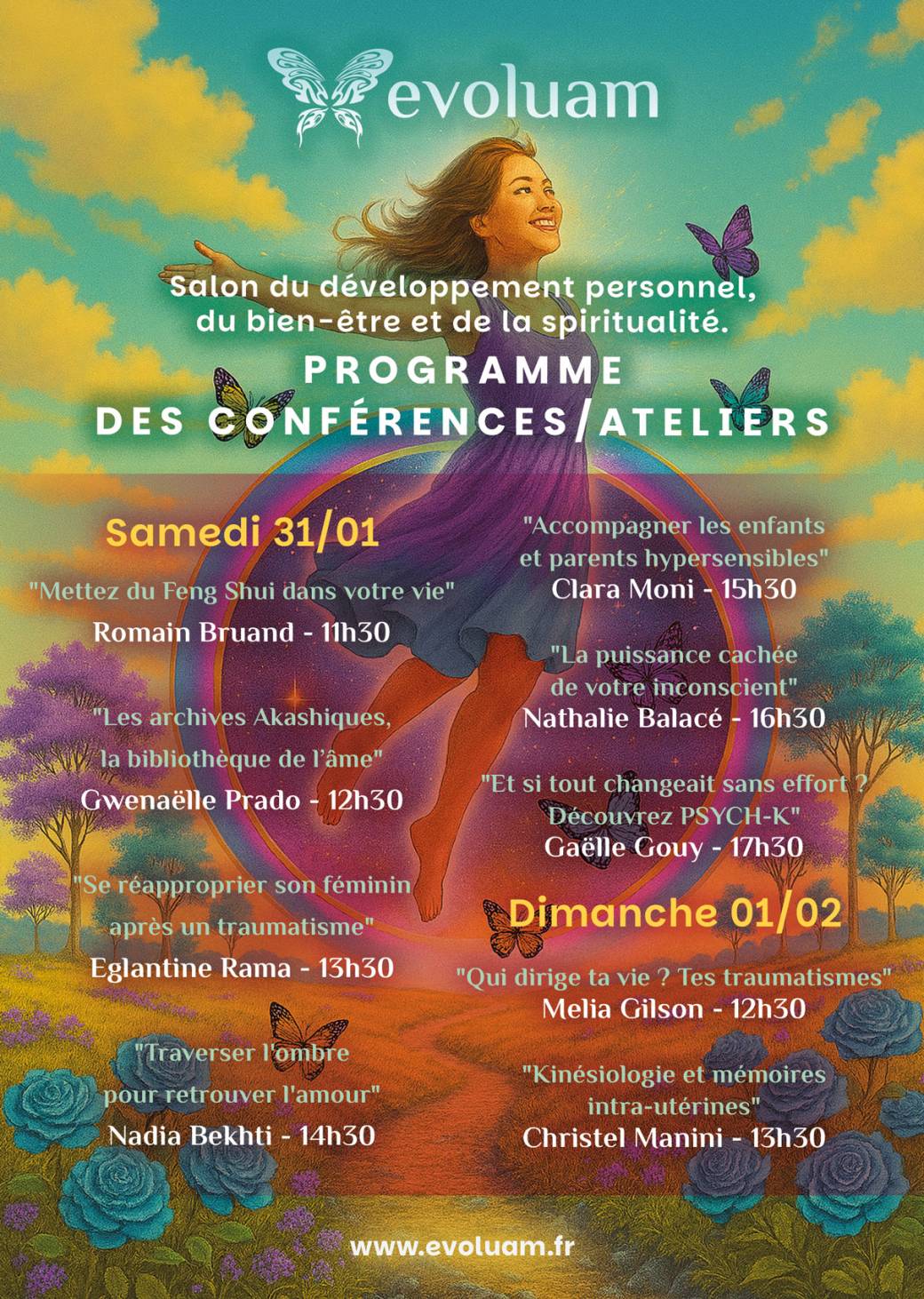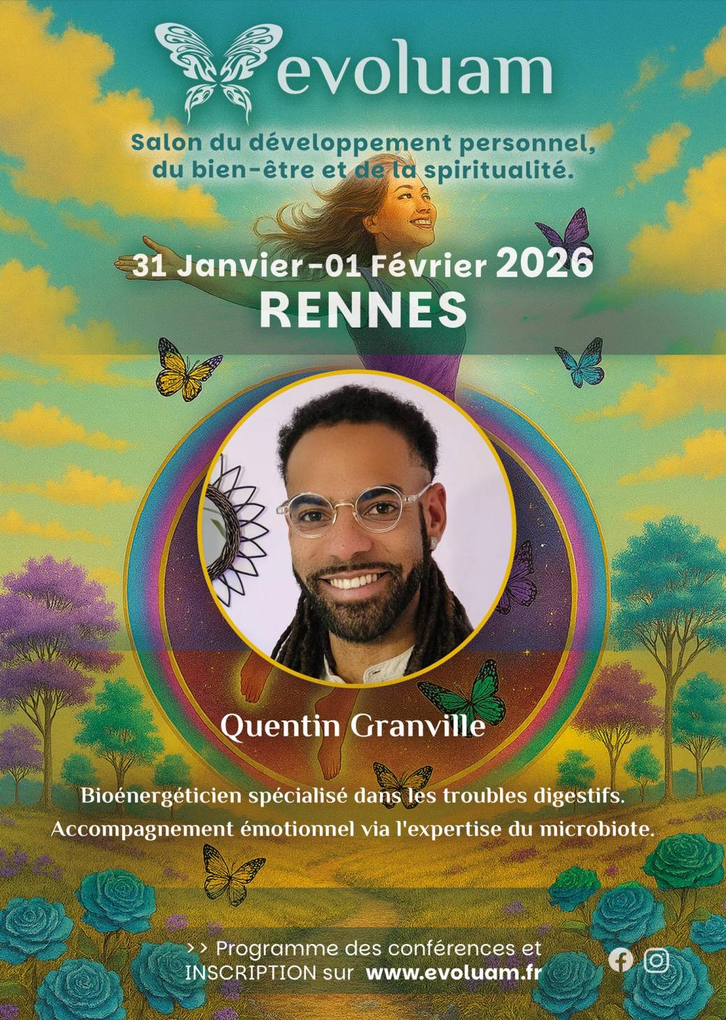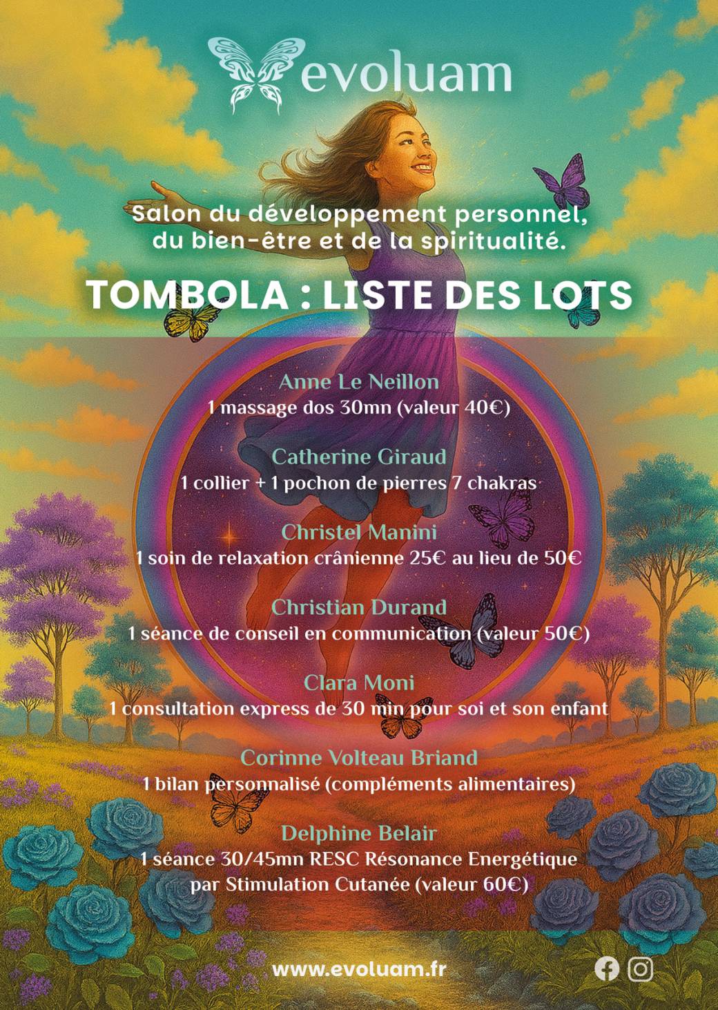 EVOLUAM met en lumière une grande variété de praticiens en développement personnel, bien-être, spiritualité pour accompagner le grand public dans son évolution personnelle. Les salons ont lieu majoritairement en région nantaise et Pays de la Loire.