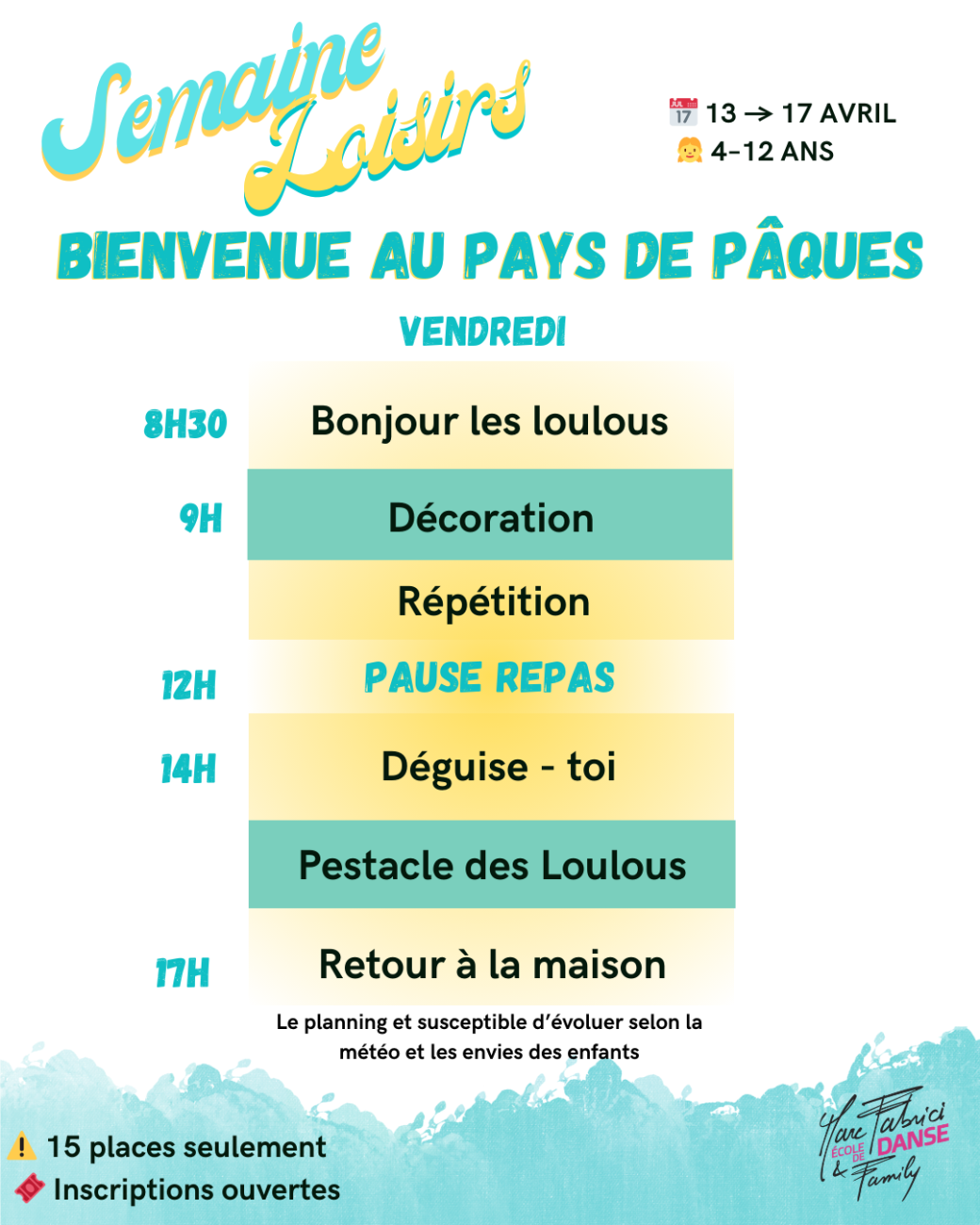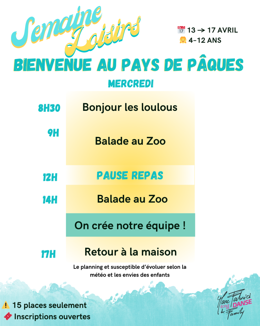 Les places sont limitées afin de garantir qualité et attention à chaque enfant.