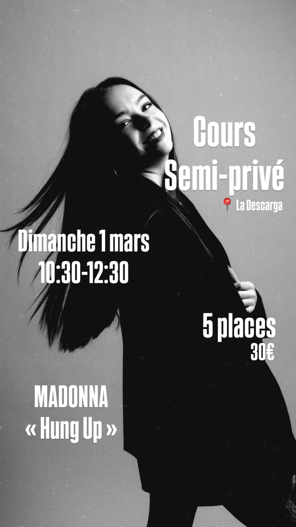 2026-03-01 10:30:00 2026-03-01 12:30:00 Europe/Paris Semi-privé Street Jazz Reservations on : https://www.billetweb.fr/semi-prive-madonna -- Cours semi-privé Street Jazz Dimanche 1 mars 10:30-12:30 Tous niveaux. Madonna - Hung Up 5 places.   Merci de vous présenter 10 mins avant le début du cours. Eau, tenue confortable, baskets propres.  *Le billet n'est pas remboursable. 30 Rue de Buffon, Rouen, France Léonore