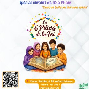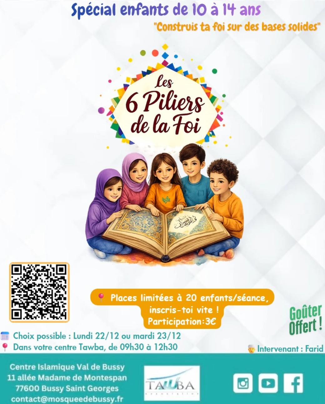 2025-12-22 09:30:002025-12-23 12:30:00Europe/ParisSéminaire enfants: Les 6 piliers de la foi (10 à 14 ans)Reservations on : https://www.billetweb.fr/seminaire-enfants-les-6-piliers-de-la-foi-10-a-14-ans