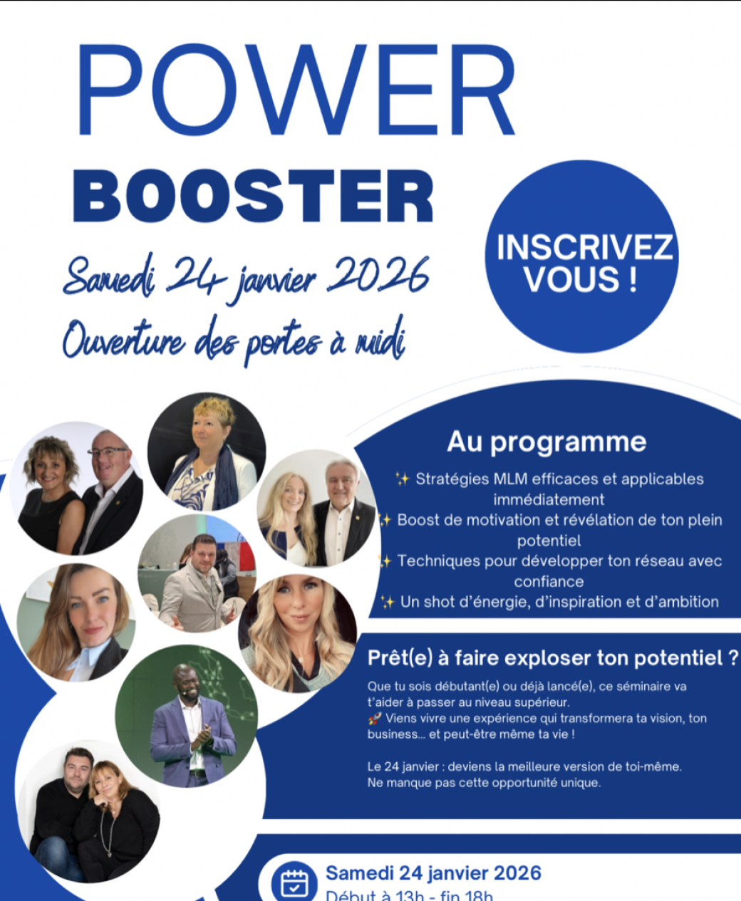 Reservations on : https://www.billetweb.fr/seminaire-power-booster1 --