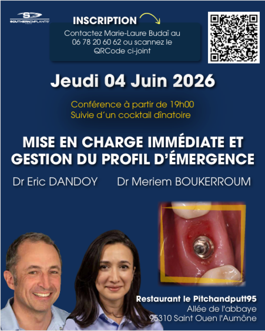 Retrouvez les Docteurs Meriem Boukerroum et Eric Dandoy, pour une soirée d’échanges autour de la mise en charge immédiate et de la gestion du profil d'émergence, le Jeudi 04 Juin 2026 à Saint Ouen l'Aumône à partir de 19h.