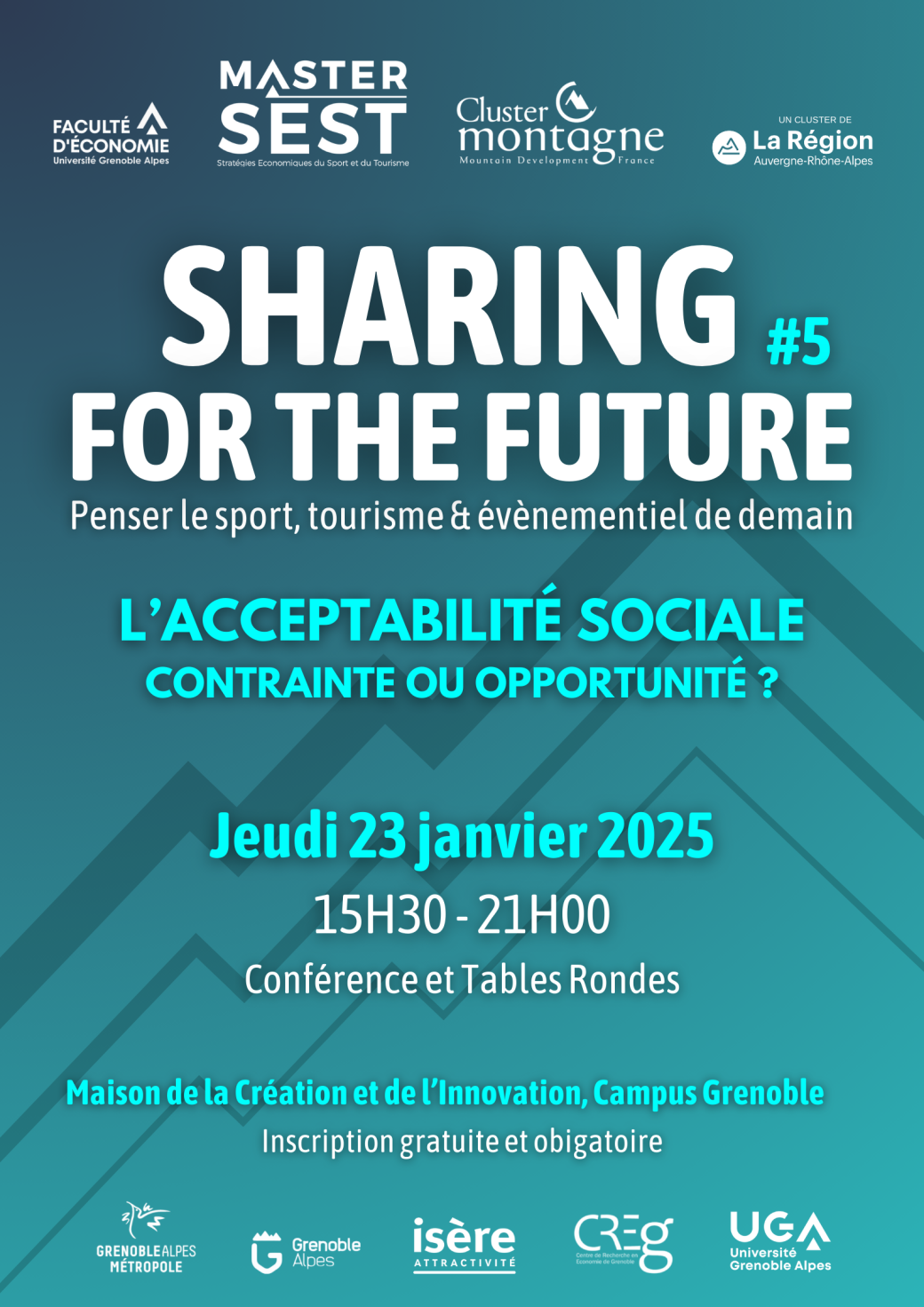 Le Master SEST (Stratégies Economiques du Sport et du Tourisme de l’Université Grenoble Alpes) et le Cluster Montagne (Association fédérant les acteurs français de l’aménagement touristique en montagne) vous invitent à une journée d’échanges sur les stratégies d’adaptation des acteurs du sport, du tourisme et de l’événementiel face aux grandes problématiques managériales actuelles.