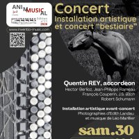 20 h : Installation audiovisuelle E. LANDAU/L.MARILLIER - 20 h 30 : Concert Q. REY, accordéon - buffet après-concert offert