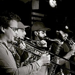 Entre formations classique, jazz et apprentissage autodidacte, de Lille à Lausanne en passant par Orthez, et parmi de beaux projets musicaux (PEAKS, ALT, Paper Chase, Cooking With, Call Me Colette, Quintette Bacchus, BoulBiBrass, Nouveau Fou, etc.) ces quatre cuivres péchus et cette section rythmique solide se retrouvent à Paris et font naître un vent de groove teinté de funk et de jazz.