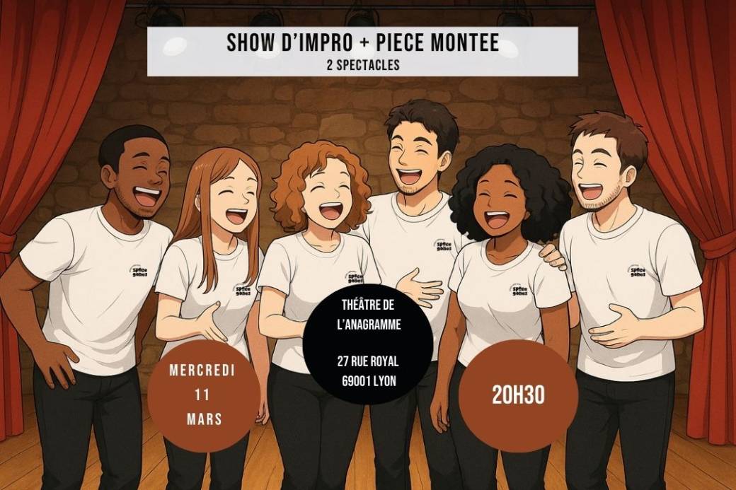 2026-03-11 20:30:00 2026-03-11 22:00:00 Europe/Paris "Show d'impro + Pièce montée" spectacle élève Space Gones Reservations on : https://www.billetweb.fr/show-dimpro-piece-montee-spectacle-eleve-space-gones1 -- "Show d'impro + Pièce montée" par les élèves de l’école IMPRO SPACE GONES   On prend notre classe experte du mardi, on les met dans une boîte, on mélange bien et on obtient 2 spectacles de folie « made in Space Gones ».   Rires garantis !   infos pratiques: Ouverture des portes : 20H Fermeture des portes : 20H25 (ne soyez pas en retard !) Théâtre de L'Anagramme, Rue Royale, Lyon, France Impro Space Gones