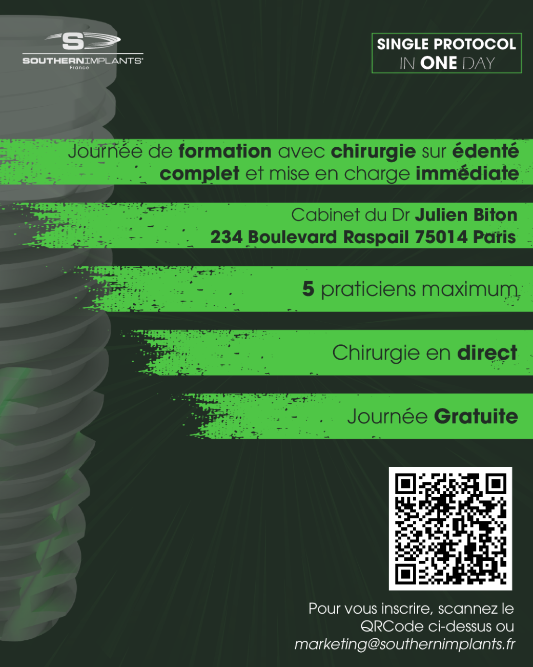 Une journée immersive au cabinet du Dr Julien Biton, pensée pour structurer votre approche implantaire autour d’un protocole simple, reproductible et immédiatement applicable.