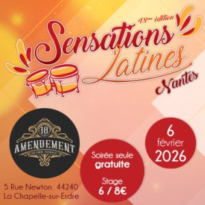 2026-02-06 20:15:00 2026-02-07 00:30:00 Europe/Paris Sensations Latines #48 - Salsa & Bachata au 18ème amendement ! Reservations on : https://www.billetweb.fr/sl-48-18eme-amendement -- Toutes les informations sur l'événement facebook : https://www.facebook.com/events/24812542668381536 La billetterie pour les stages est ouverte jusqu'à la veille de la soirée à 22h à tarif préfentiel. Ensuite, le paiement se fera sur place (par CB ou en espèces) Bar du 18e amendement pour vous restaurer ! 18e Amendement, Rue Newton, La Chapelle-sur-Erdre, France Sensations Latines