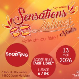 2026-05-22 20:15:00 2026-05-23 00:15:00 Europe/Paris Sensations Latines - #53 - Salsa & Bachata au 18ème amendement ! Reservations on : https://www.billetweb.fr/sl-53-18e-amendement -- Toutes les informations sur l'événement facebook : https://www.facebook.com/events/2428051490922755/ La billetterie pour les stages est ouverte jusqu'à la veille de la soirée à 22h à tarif préfentiel. Ensuite, le paiement se fera sur place (par CB ou en espèces)   Soirée tarif libre : ici même ou urne sur place pour soutenir nos événements et DJs ! Bar du Sporting pour vous restaurer ! 18e Amendement, Rue Newton, La Chapelle-sur-Erdre, France Sensations Latines