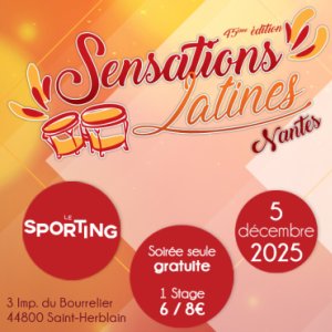 2025-12-05 20:15:00 2025-12-06 00:15:00 Europe/Paris Sensations Latines #45 - Salsa & Bachata au Sporting ! Reservations on : https://www.billetweb.fr/sl-sporting-45 -- Toutes les informations sur l'événement facebook : https://www.facebook.com/events/1145531811059333/ Le Sporting Nantes, Impasse du Bourrelier, Saint-Herblain, France Sensations Latines
