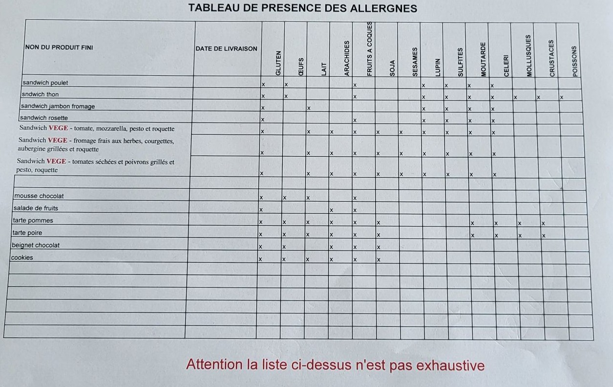 La liste des allergènes est disponible ci dessous.