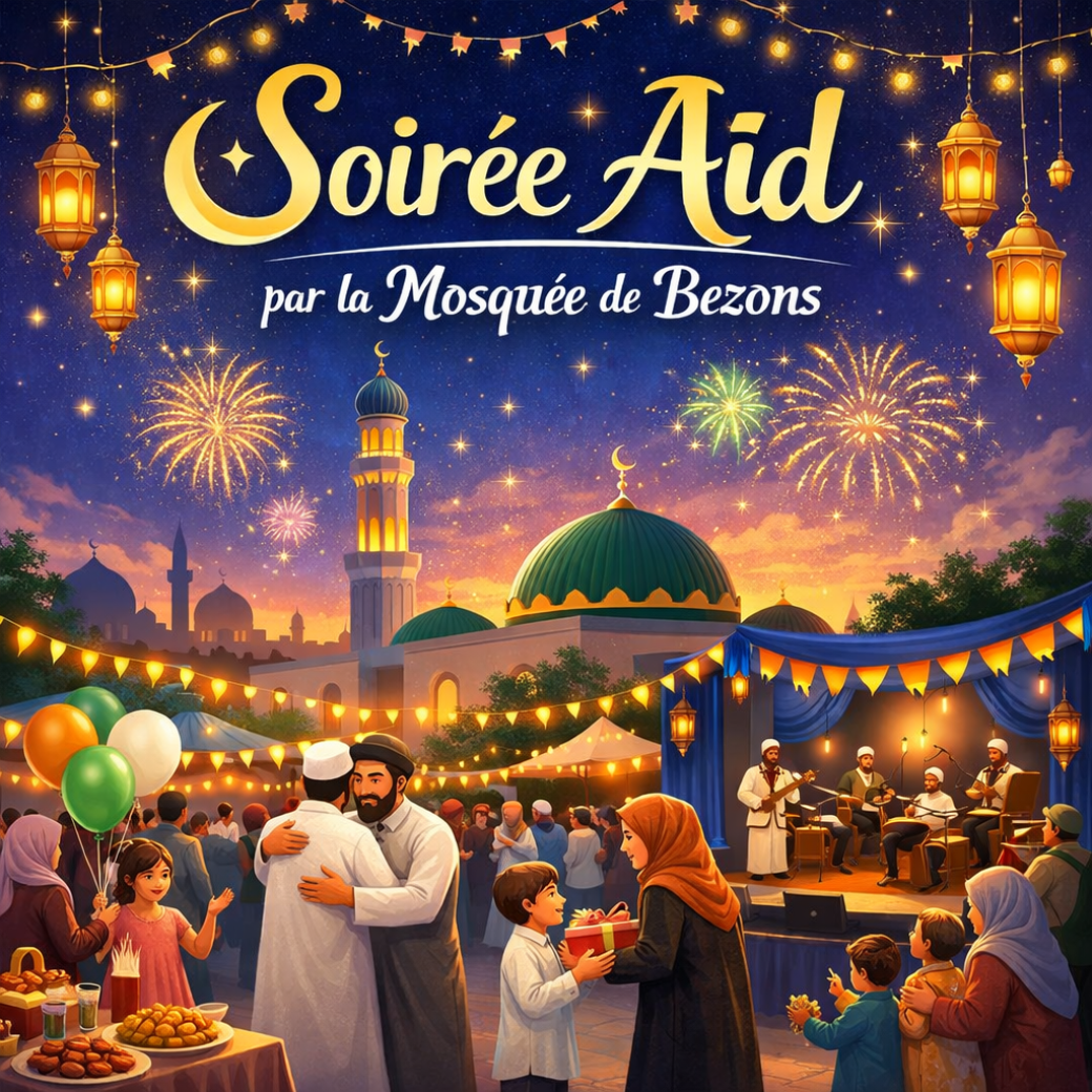 La Mosquée de Bezons a le plaisir de vous inviter à une soirée conviviale à l’occasion de la fête de l’Aïd. Un moment chaleureux placé sous le signe du partage, de la fraternité et de la rencontre.