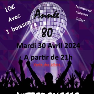 2024-04-30 21:00:002024-05-01 04:00:00Europe/ParisSoirée année 80Reservations on : https://www.billetweb.fr/soiree-annee-8012